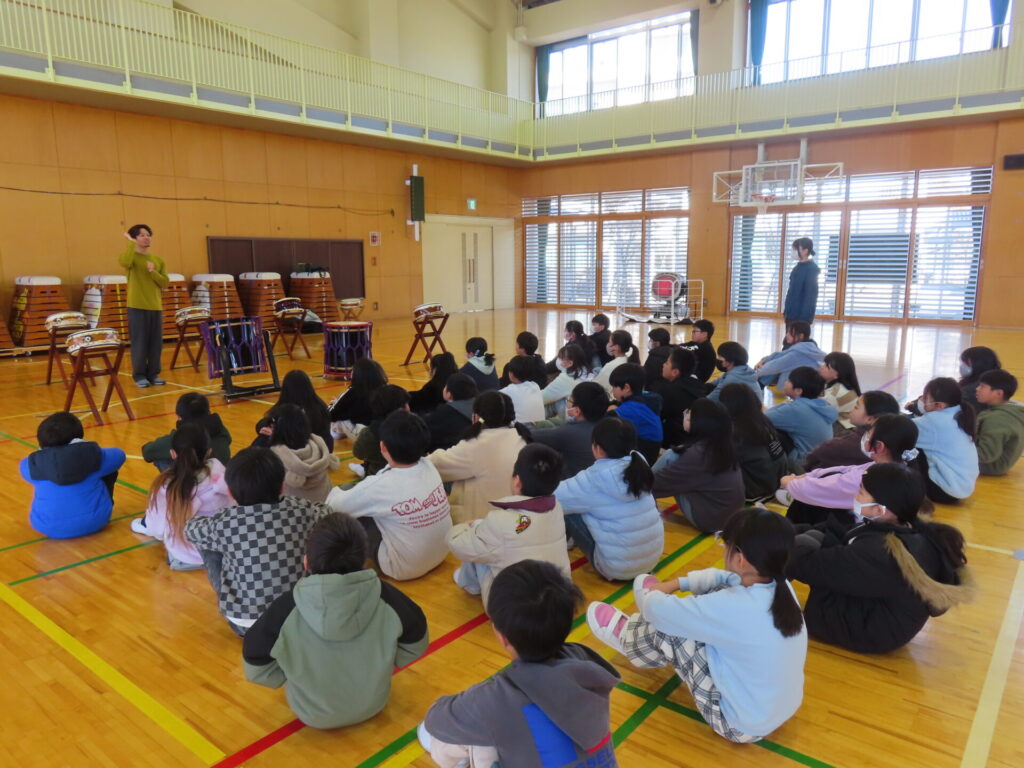 和太鼓体験(4年生) 2026年2月3日 最終更新日時 : 2026年2月3日 kumagaya_edit 1月29日(木)、杉山先生に和太鼓について教えていただきました。まず、和太鼓の歴史と種類について学んだあと、実際に和太鼓に触れる体験をしました。和太鼓を演奏する楽しさを感じ、貴重な経験となりました。