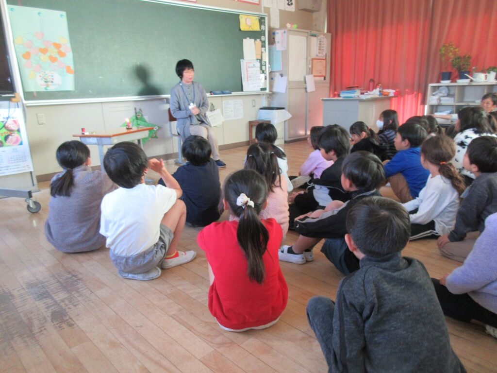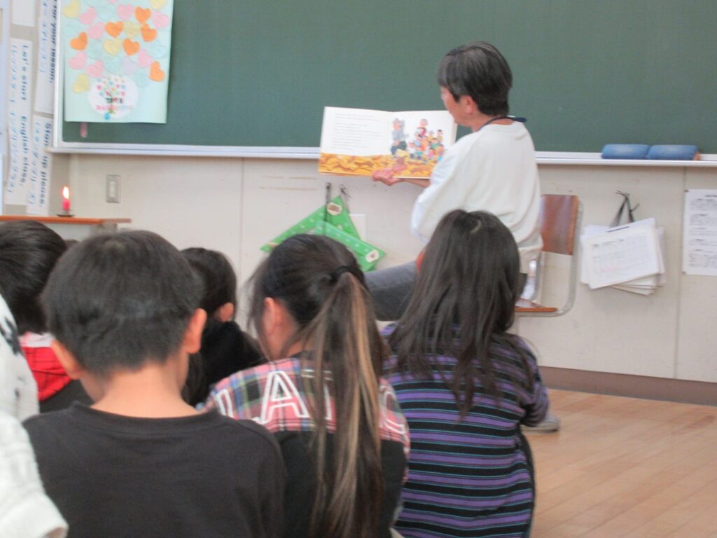 11月26日(水)、「にじの会」の先生方が3年生のために読み聞かせに来てくださいました。