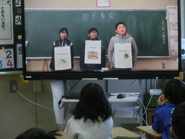 給食朝会 2026年1月27日 最終更新日時 : 2026年1月28日 kumagaya_edit 1月27日(火)、給食委員会によるteamsを利用した給食集会を開きました。給食委員によるクイズが行われ、食事のマナーや、食べ物を大事にする感謝の心、好き嫌いしないでバランスよく食べる食事の重要性について楽しく学ぶことができました。
